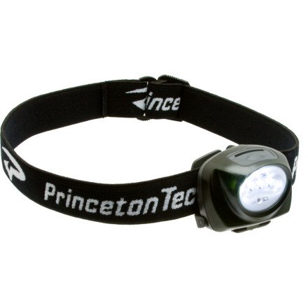 When you need an ultralight headlamp that does it all, look to the Princeton Tec Quad Headlamp. With its four ultrabright LEDs, this headlamp powers through the darkest conditions. Its wide beam is great for technical scrambles, while the rest of its four settings can be tailored to your needsfrom campfire cooking to moonless trail runs. These LEDs burn at a constant brightness, and the Quad features a battery meter so you know when to change the batteries (AAA alkaline batteries included). The tough waterproof housing means the bulbs will live through severe impacts and water submersions up to three feet. Princeton Tec incorporated special circuitry so weight-obsessed climbers can reduce the Quad's already paltry 3.4oz to 2.9oz by using lithium batteries (not included).