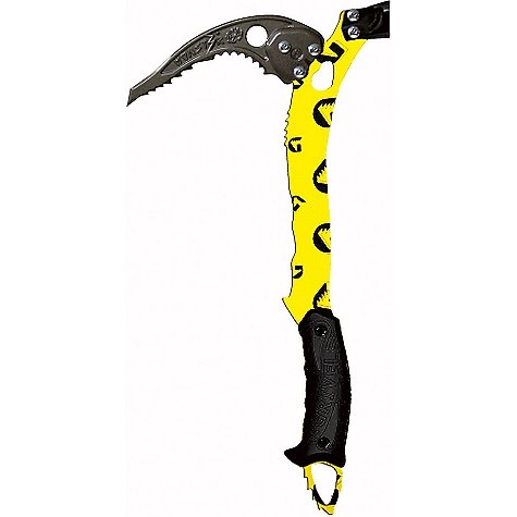11181500044CM Features: Designed for vertical walls with a unique shaft and multi-grip The thin, shorter pick anchors in deep and the thin shaft fits easily between columns or in narrow cracks The flexible shaft makes anchoring into cracks, including non-vertical ones, easier and safer A hole in the shaft can be used to attach a leash Features an anti-slip claw at the end of the shaft Modern graphics on the shaft make it stand out in the crowd Blade is changeable and reverse positive Specifications: Weight: 1 lb 3 oz Head material: Chromoly steel Shaft material: Chromoly spring steel to rubber